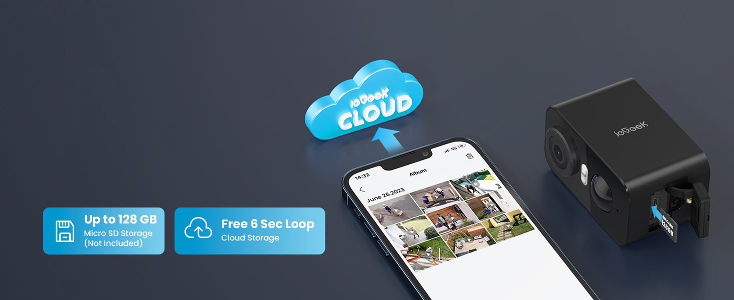 🎁Clear Two-Way Talk & Micro Memory Card/Cloud Storage & Work with Alexa: ieGeek wifi camera has built-in microphone and speaker, allowing you to communicate with people who is around the camera remotely. You can warn intruders by your voice or talk to family and friends. ieGeek home security camera supports Micro memory card (Up to 128GB, Not Included) and cloud storage, the historic recording is saved onto Micro memory card or cloud, you can playback or download recording on the phone.