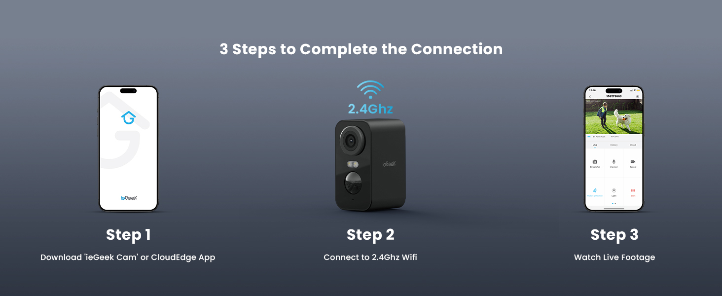 🎁100% Wire Free Installation & More Stable Wifi Connection: ieGeek wireless cctv camera is powered by battery and connected to network via wifi. Without annoying power cord and network cables, you can install more freely and complete installation within 10 minutes. Equipped with built-in wifi module, which can effectively strengthen wifi connection and expand wifi coverage. You can access the camera via the app remotely, and won't be worried about the camera is offline anymore.